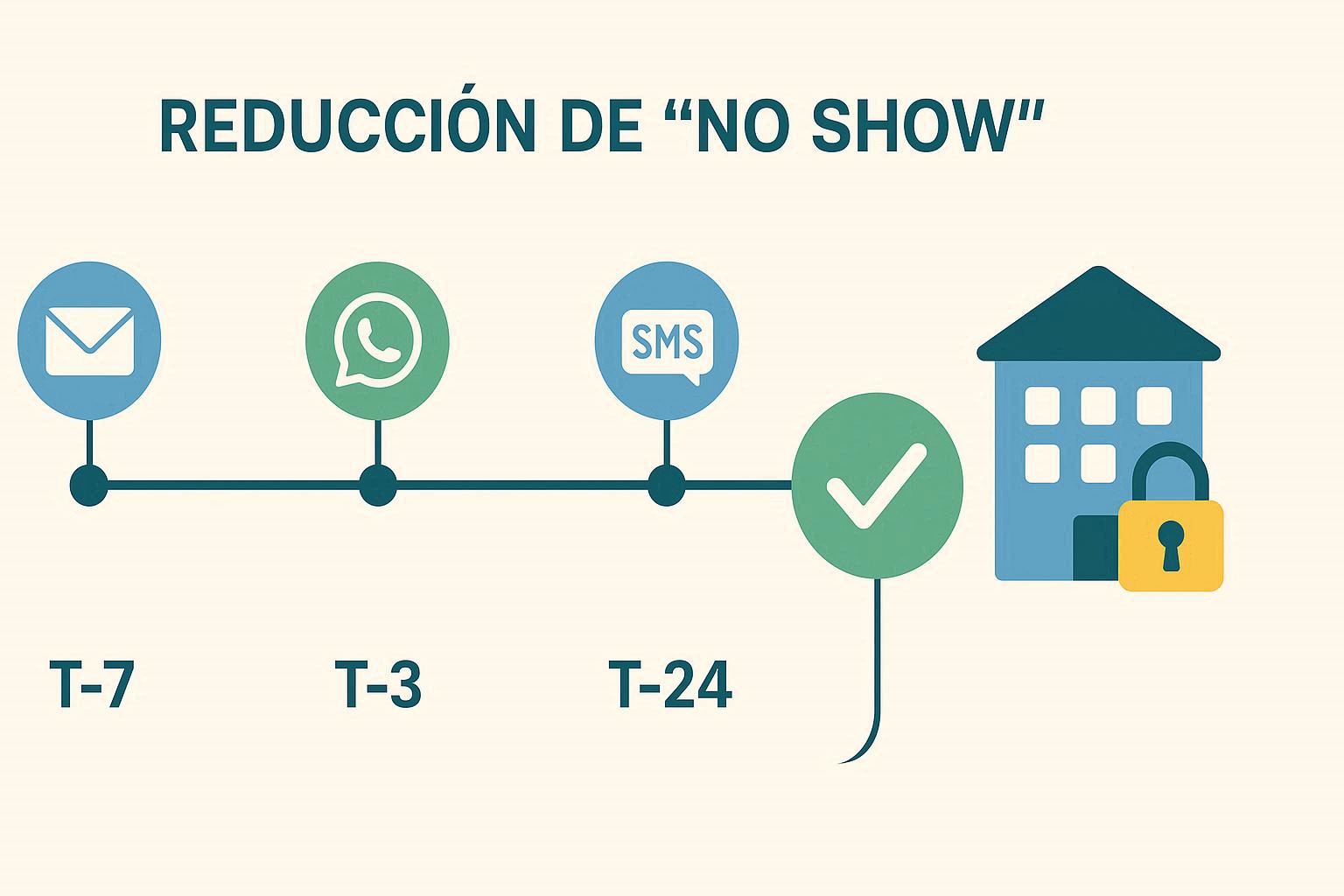 Flujo de recordatorios multicanal para reducir no‑shows y proteger ingresos hoteleros...
